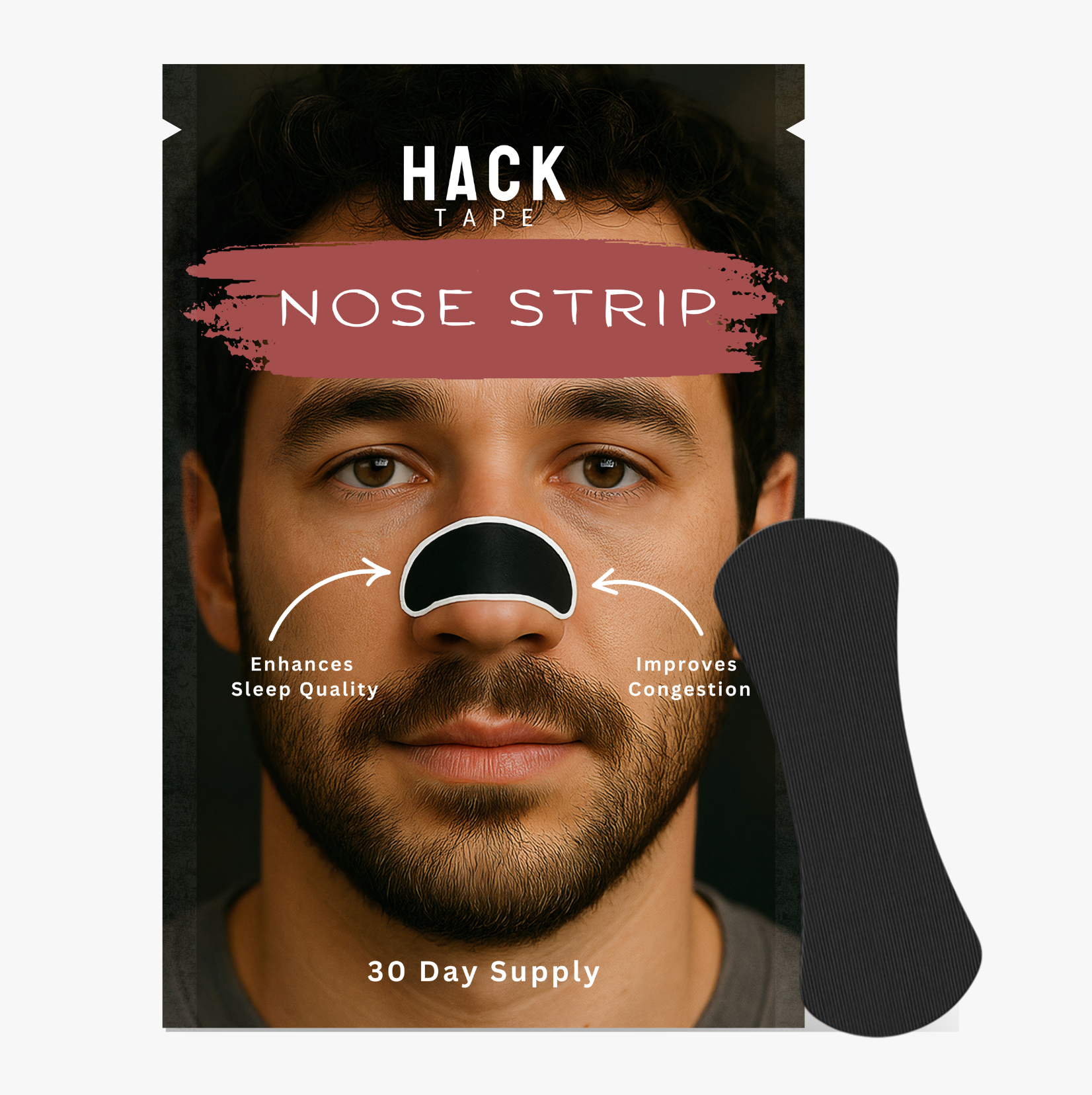 HackTape uses a flexible strip with medical-grade adhesive that gently sticks to the bridge of your nose. Once applied, it lifts the skin slightly, which physically opens the nasal valves — the narrowest parts of your airway. This mechanical action increases airflow and makes it easier to breathe through your nose.